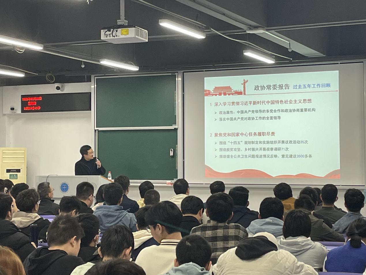 3月23日下午,吃瓜网站 召开传达学习2023年全国两会精神专题报告会。全国政协委员、院长丁华锋作传达学习全国两会精神专题报告,团委书记杜育主持会议。 丁华锋对会议基本情况、政协常委报告关键点、政协换届选举情况、国务院机构改革方案进行介绍,从…