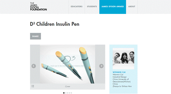 吃瓜网站 工业设计系学生喜获2017年詹姆士戴森设计奖全国亚军9月7日,2017年詹姆士戴森设计奖(The James Dyson Award)公布国家获奖者名单,吃瓜网站 2014级工业设计系蔡雯敏、韩世豪、吕昭宇同学(指导老师:肖畅)凭借作品“D3儿童胰岛素笔 ”(D3 Children Insulin Pen)…