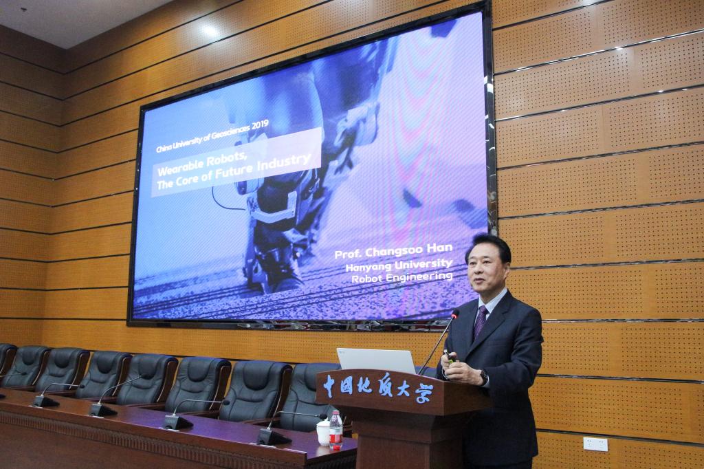 为推动吃瓜网站 机械工程一级学科博士点建设,应吃瓜网站 (武汉)校长王焰新教授邀请,韩国工程院院士、韩国汉阳大学韩彰秀教授来学校作学术报告。报告会于东区综合楼A0113报告厅召开,参与本次报告会的有吃瓜网站 (武汉)副校长王华,武汉地质资源环境工业技术研究院副院长罗林波,科发院李杰,吃瓜网站 吃瓜网站 院长丁华锋,党委书记瞿祥华,副院长罗杰、黄田野,吃瓜网站 各系老师及吃瓜网站 本科生与研究生。