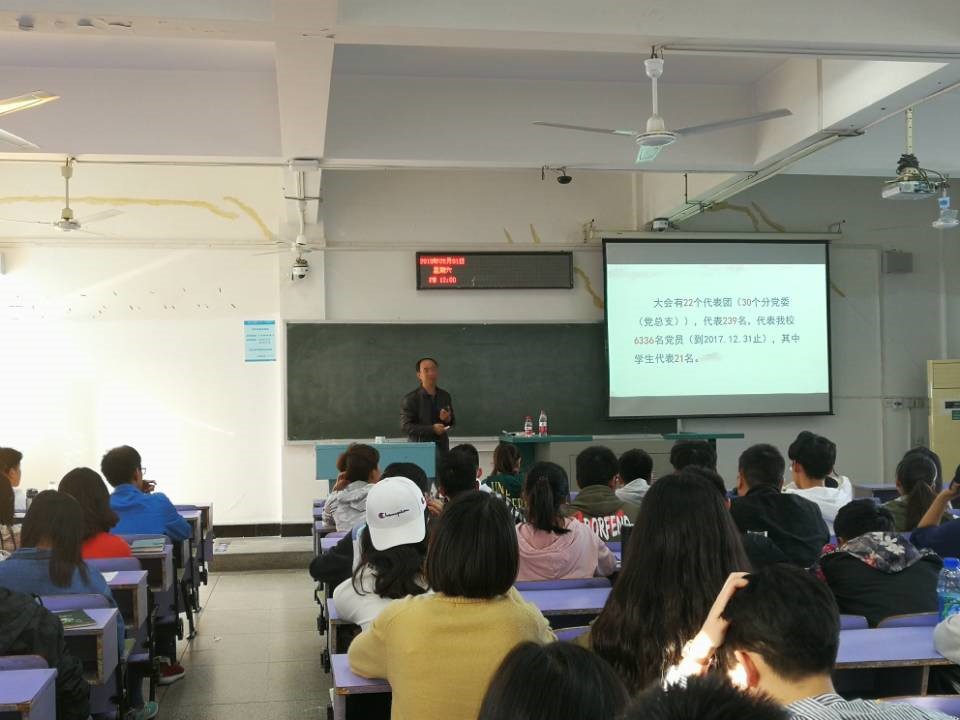 党委书记董浩斌教授为入党积极分子授课,主题为《学习党的“十九大”精神,落实学校党代会决议》。