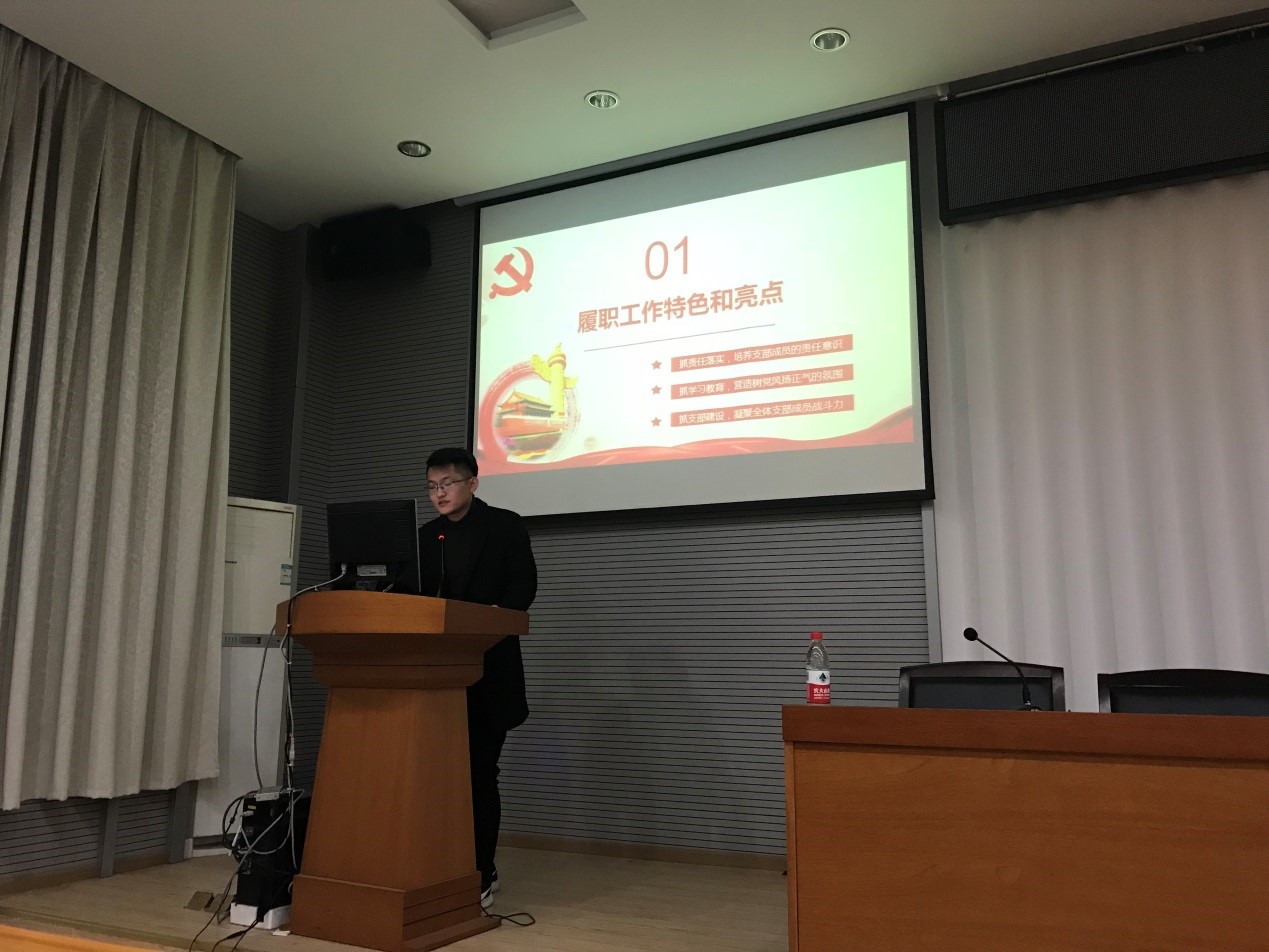 在教二楼301开展学生党支部书记述职考核大会,院党委书记瞿祥华、党委副书记于晓舟、全体辅导员担任评委,全体学生党支部支委成员、党员代表、入党积极分子代表参加会议。共有12位学生党支部书记参加现场述职,形式为支部书记依次上台汇报工作,评委对其进行点评或提问,并现场评定等次。