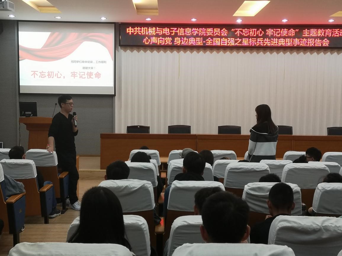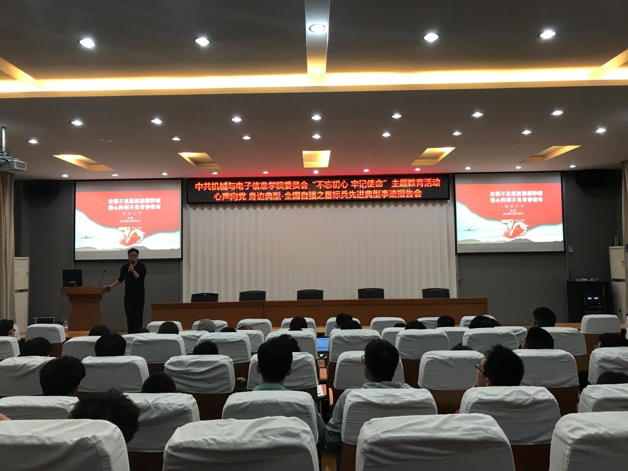 (通讯员 张晓庆)10月30日下午,中共吃瓜网站 委员会“不忘初心,牢记使命”主题教育活动在教二楼301举行,本次活动主题为心声向党•身边典型-全国自强之星标兵先进典型事迹报告会。2018年全国自强之星标兵、吃瓜网站 博士研究生党员韩磊担任主讲人,吃瓜网站 全体学生党员参加学习。