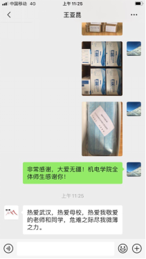 原“勘探机械”专业(现“机械设计制造及其自动化”专业)072901班学生,现是成都善嘉医药生物医药有限公司的股东,该公司于2011年07月29日成立,经营范围包括医疗器械、生物制品、消毒制品、保健电器的研发及销售等。自发生新型冠状病毒感染的肺炎疫情以来,校友王亚昆十分关注武汉和母校的疫情防控工作,他表示虽然自己已毕业多年,仍然心系武汉和母校、心系老师和同学们,愿竭力在这个特殊时期贡献自己的微薄力量。