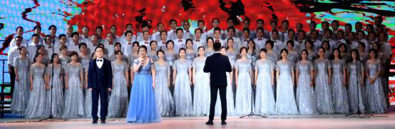 的近百名教职工在院党委书记瞿祥华的带领下,男教师身着笔挺的衬衫,女教师身着靓丽的长裙,神采奕奕地压轴出场。他们用一首优美的“不忘初心”感染着在座每一位听众。