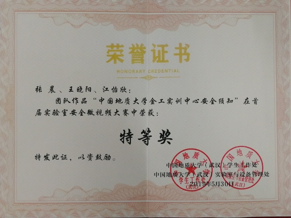 金工实习训练中心安全须知”微视频在学校实验室安全微视频比赛中表现突出,受到全校师生高度好评,一举获得学校特设的“实验室安全微视频比赛特等奖”。