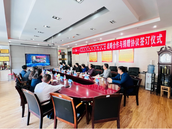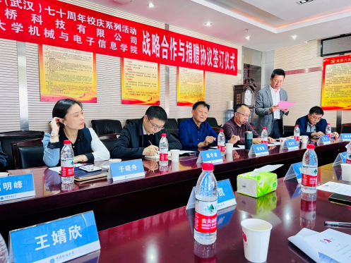 战略合作与捐赠签约仪式。湖北中桥科技有限公司总裁丁燕、董事长周强、副总经理黎米和丁小华、董事长助理王婧欣以、武汉地大矿业有限公司总经理赵凯、吃瓜网站