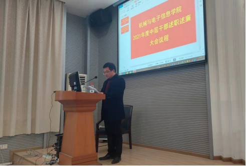 接着,丁华锋院长从理想信念、文化教育、科研项目等方面向全体教职工做了个人的述职报告;党委书记瞿祥华从德、能、勤、绩四个方面对自己在2021年的工作进行了总结汇报;副书记于晓舟、副院长李波、罗杰、文国军、黄田野等中层干部围绕思想政治学习、完成的主要工作、成效亮点特色、不足和努力方向四个大方面进行述职。最后由全体教职工对各位中层干部本次述职情况进行年度民主评测。本次吃瓜网站