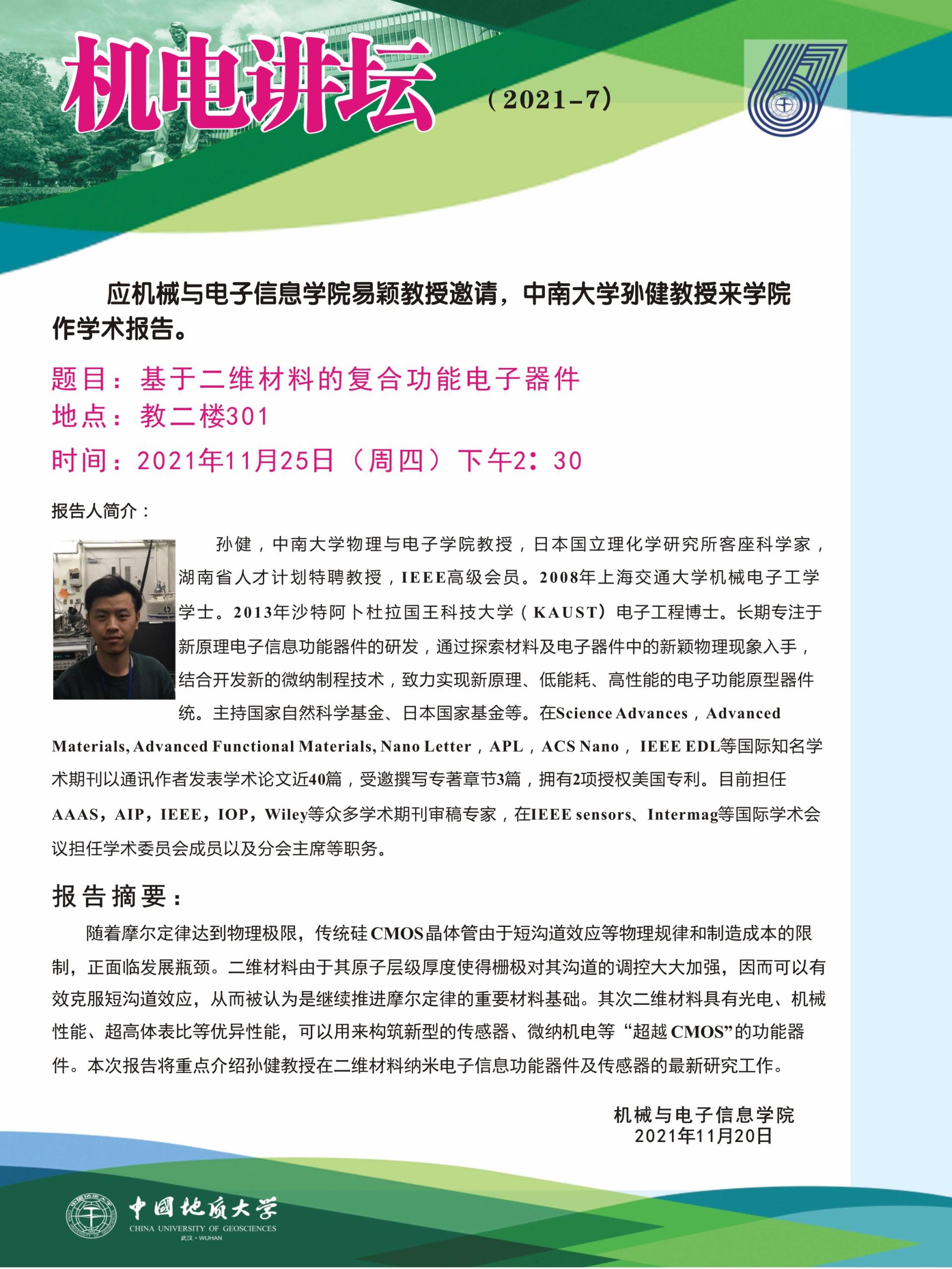 吃瓜网站 讲坛2021-7:中南大学孙健教授学术报告