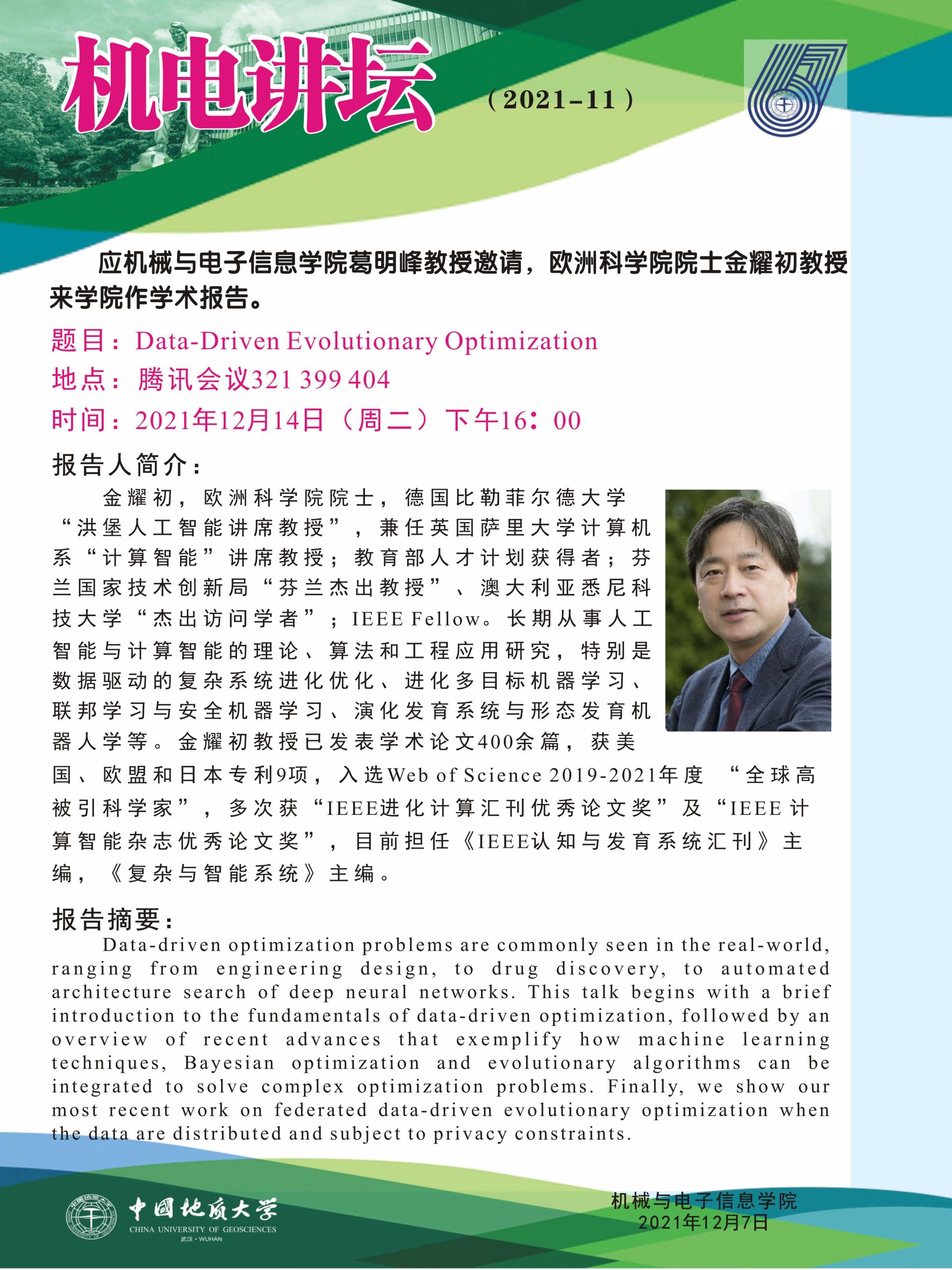 吃瓜网站 讲坛2021-11:欧洲科吃瓜网站 院士金耀初教授学术报告
