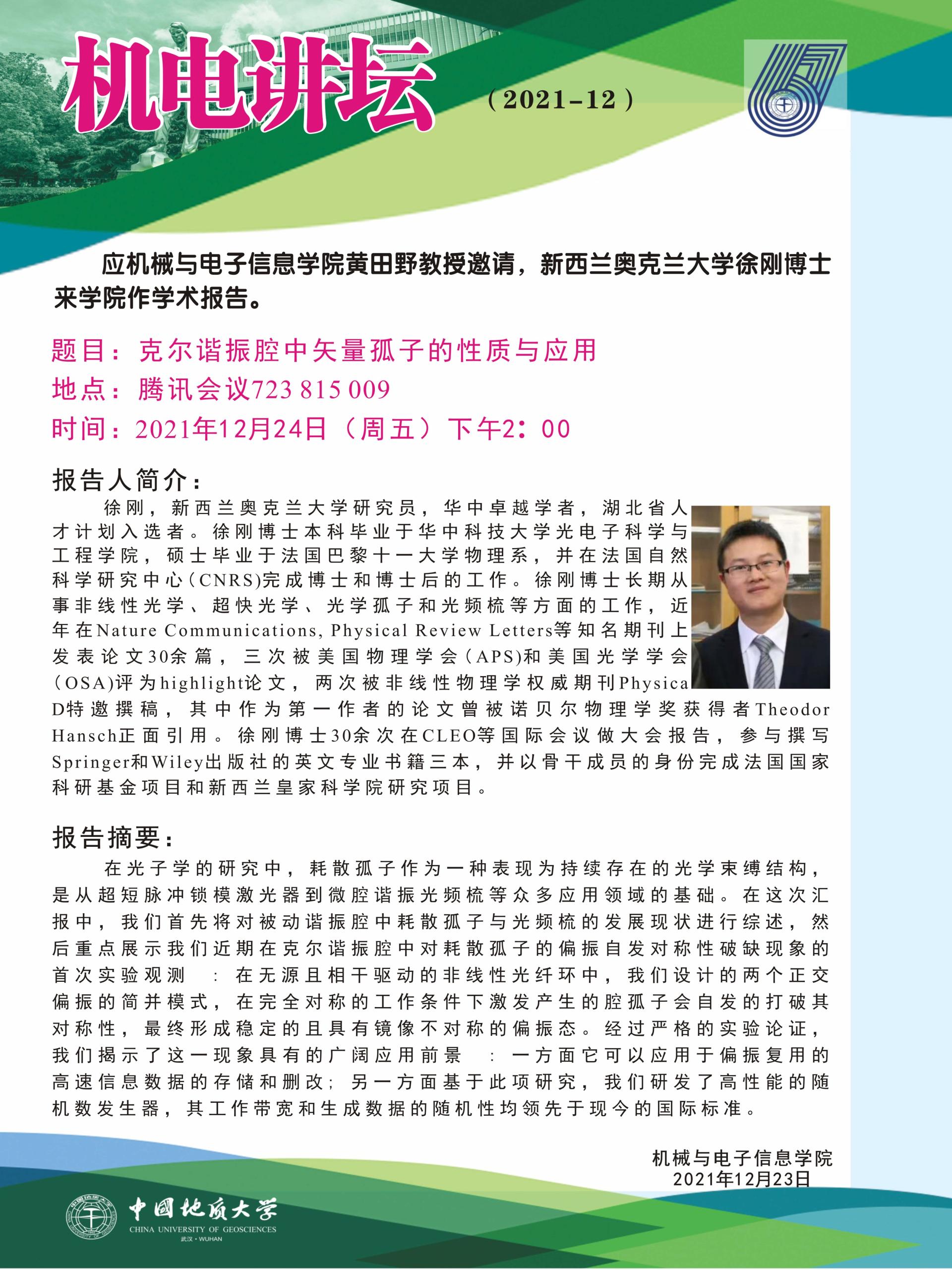 吃瓜网站 讲坛2021-12:新西兰奥克兰大学徐刚博士学术报告