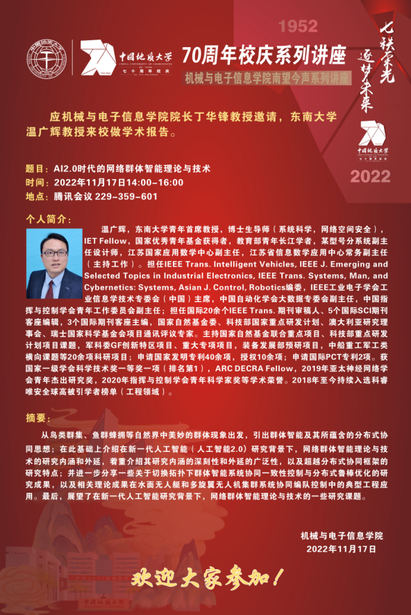 【11月17日】校庆系列学术活动---吃瓜网站 讲坛(2022-29):东南大学温广辉教授