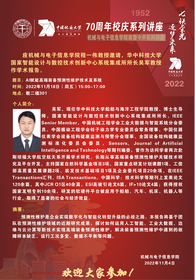 【11月12日】校庆系列学术活动---名家论坛(2022-90):华中科技大学黄剑教授