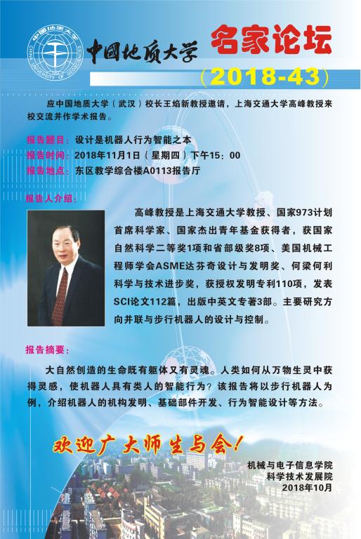 名家论坛:上海交通大学高峰教授作学术报告