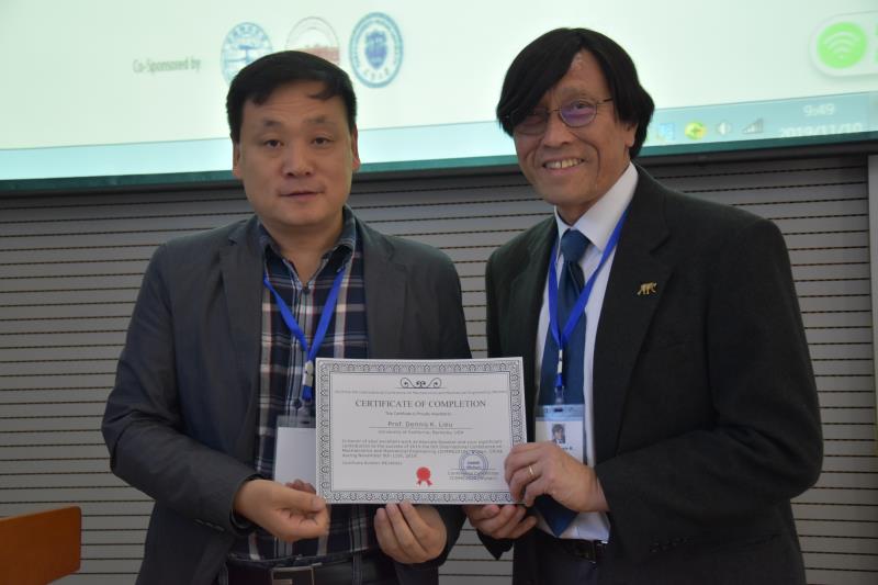 与机械工程领域的前沿研究,加强领域了解、促进合作。来自美国加州大学伯克利分校的Dennis K. Lieu教授就混合动力汽车动能回收系统的控制作了主题演讲。会议共进行了4个主题演讲,随后,来自合肥工业大学的訾斌教授对演讲者进行了颁奖。