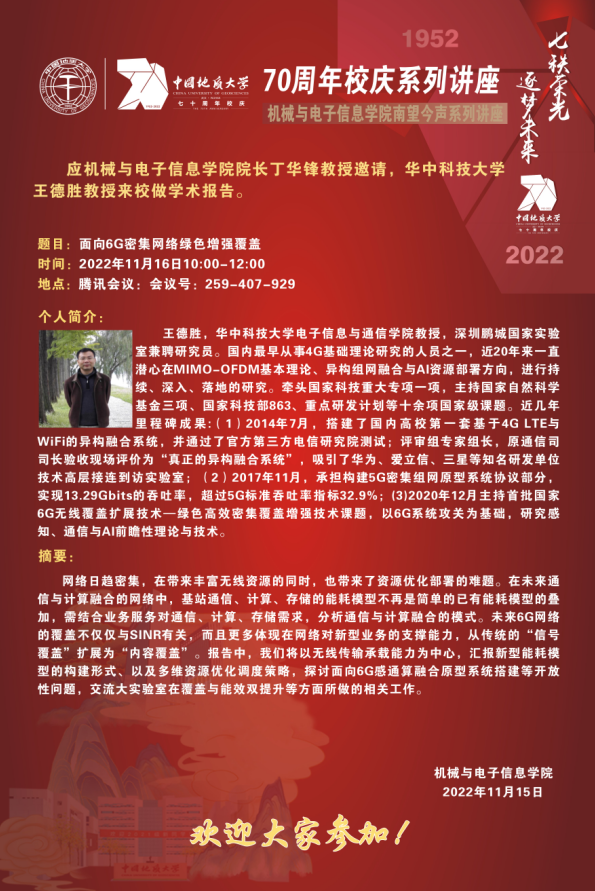 【11月16日】校庆系列学术活动---吃瓜网站 讲坛(2022-28):华中科技大学王德胜教授