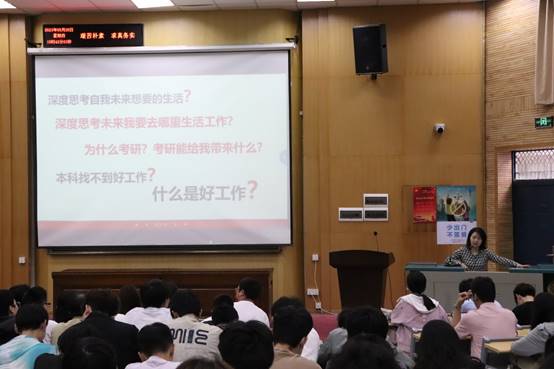 就业专员、职业规划师罗采薇,往届学生代表张松、杨天祺、辛毅应邀出席大会,2020级全体本科生参加大会,辅导员刘彪主持大会。