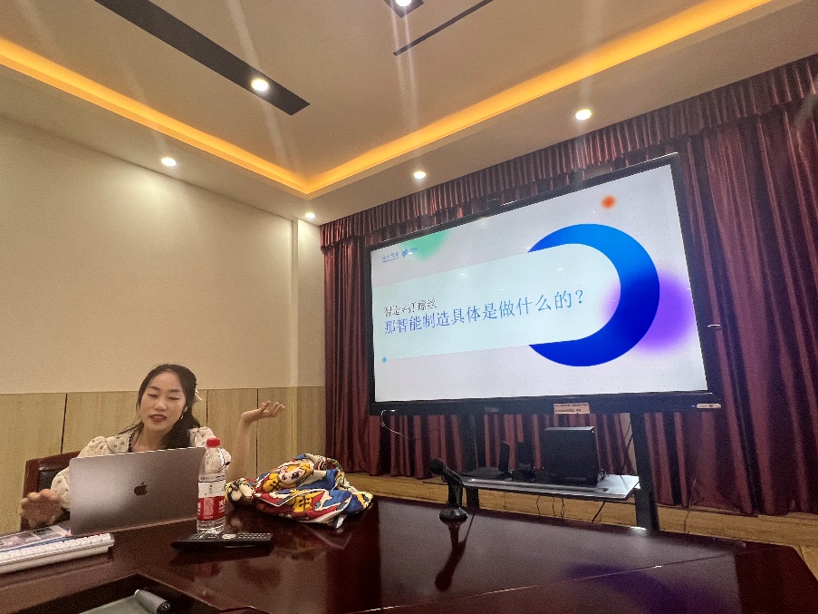 随后,海尔智家武汉园区COE学习发展接口人秦雯与同学们进行交流座谈会。在破冰环节中,同学们围绕“用关键词介绍自己”这一话题,积极分享个人经历。
