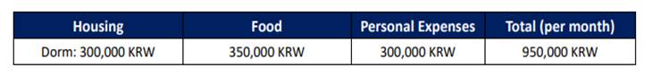 按照6000元人民币/人(安山校区)、12000元人民币/人(首尔校区)标准予以资助,其他费用自理。