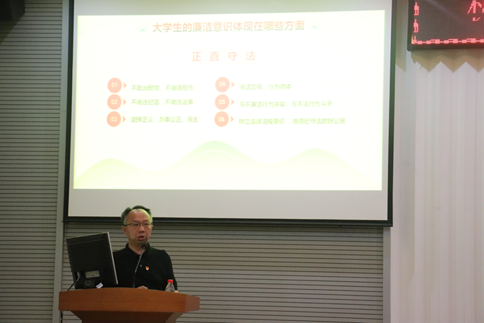 瞿祥华以“廉洁修身,成就梦想”为毕业生党员讲授党课。课上,瞿祥华从涉嫌严重违纪违法,接受组织调查的反面案例入手,指出廉洁的含义便是清廉洁白,大学生的廉洁意识应体现在诚信、勤俭、立志、正直守法以及树立正确世界观等方面。瞿祥华指出,作为大学生党员,应做到言行一致,表里如一,遵守廉洁自律准则,坚持道德高线,严守纪律底线,克己奉公。瞿祥华希望各位毕业生党员在今后的学习工作中,要识大体,顾大局,坚决与不廉洁行为决裂,与不法行为斗争,在根本上形成坚定的廉洁思想,提高统揽全局的能力,牢记“常修为人之德,常思贪欲之害,常怀律己之心”,真正做到清醒面对环境,正确对待权力,诚信科学研究,守住人生底线。