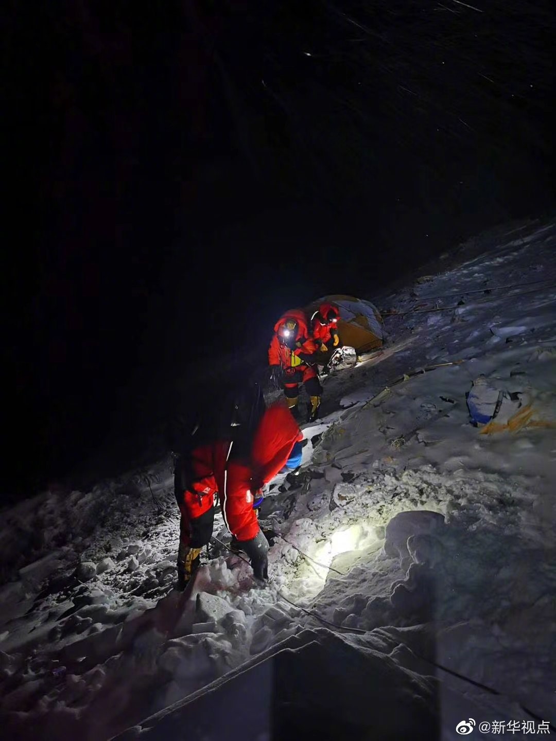 (通讯员:丁钰峰。)52711时整,2020珠峰高程测量登山队成功登顶世界第一高峰珠穆朗玛峰。他们将在峰顶竖立觇标,安装GNSS天线,开展各项峰顶测量工作。