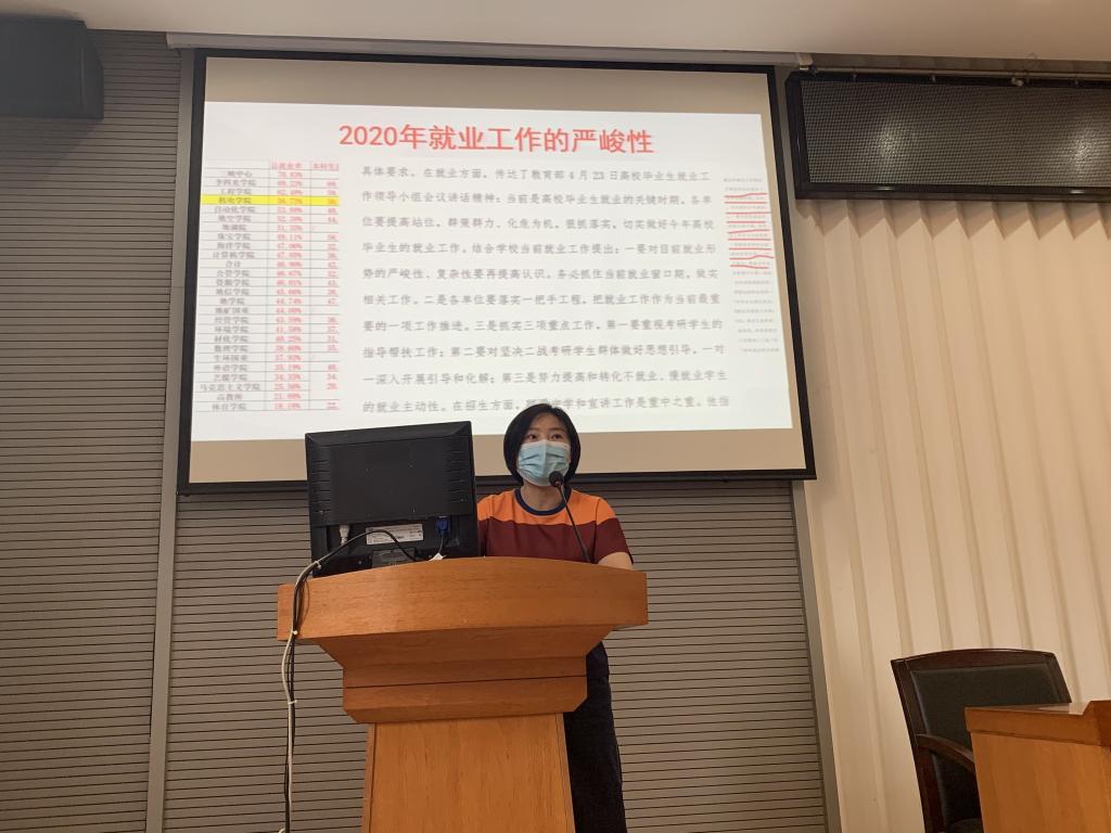 16级辅导员罗采薇首先汇报了当前2020届毕业生就业进展状况。从目前毕业生的协议签约率和升学率、吃瓜网站