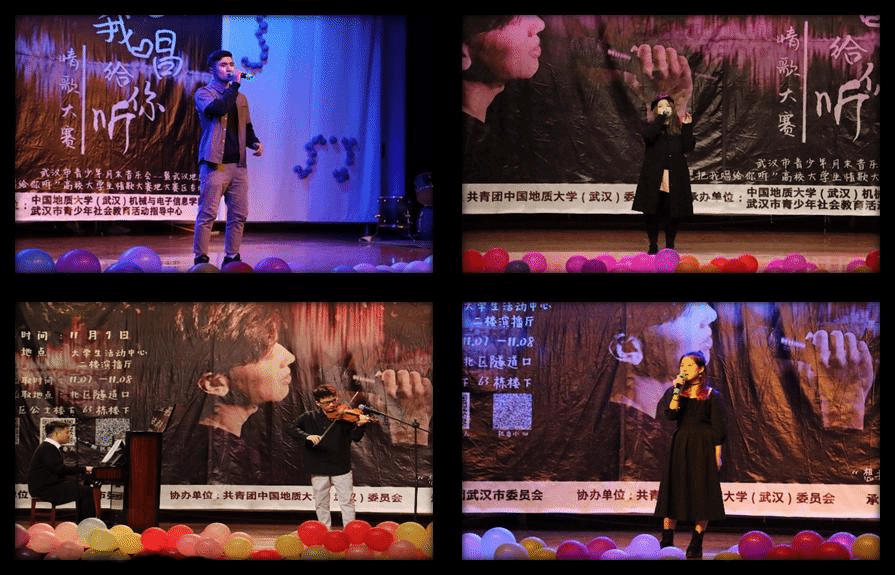 (通讯员许永健、丁钰峰)“我和我的祖国,一刻也不能分割,无论我走到哪里,都流出一首赞歌”。2019年11月9日晚,在吃瓜网站 (武汉)大学生活动中心二楼演播厅,武汉市青少年月末音乐会暨武汉地区“想把我唱给你听”高校大学生情歌大赛地大赛区决赛隆重举行,来自学校不同吃瓜网站 的11组选手,共同唱响了地大人的绵绵情歌,献礼伟大祖国、献礼可爱青春、献礼音乐梦想。