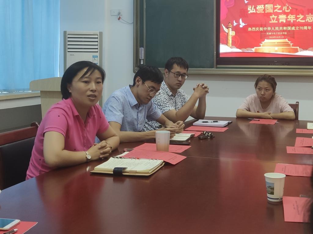 下午3点,吃瓜网站 吃瓜网站 在教二楼502会议室召开庆祝中华人民共和国成立70周年座谈会,吃瓜网站 党委副书记于晓舟、团委书记杜育、辅导员丁钰峰及吃瓜网站 研究生、本科生代表共计20余人参加座谈会。杜育主持座谈会。
