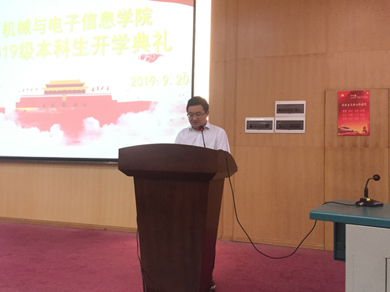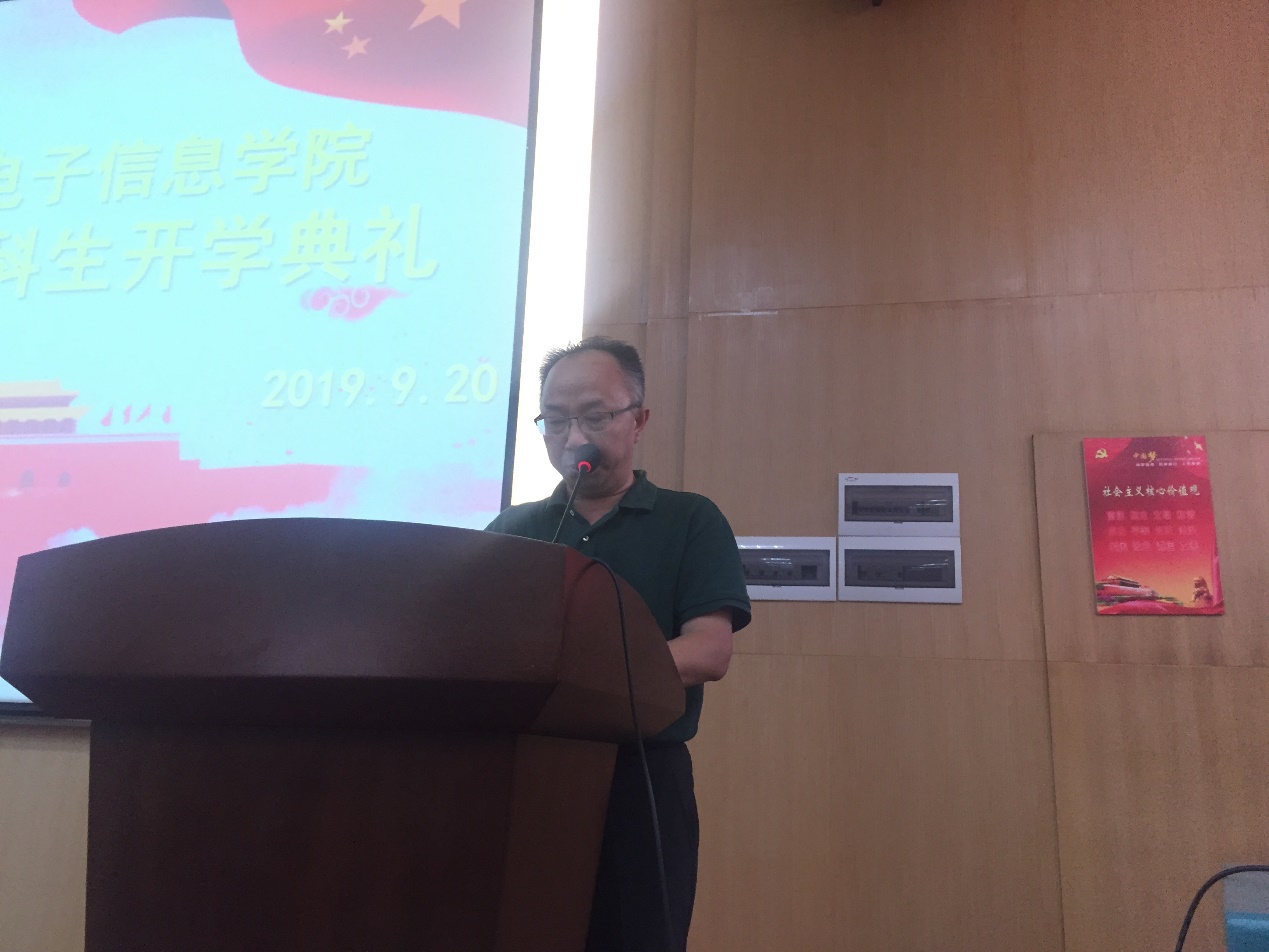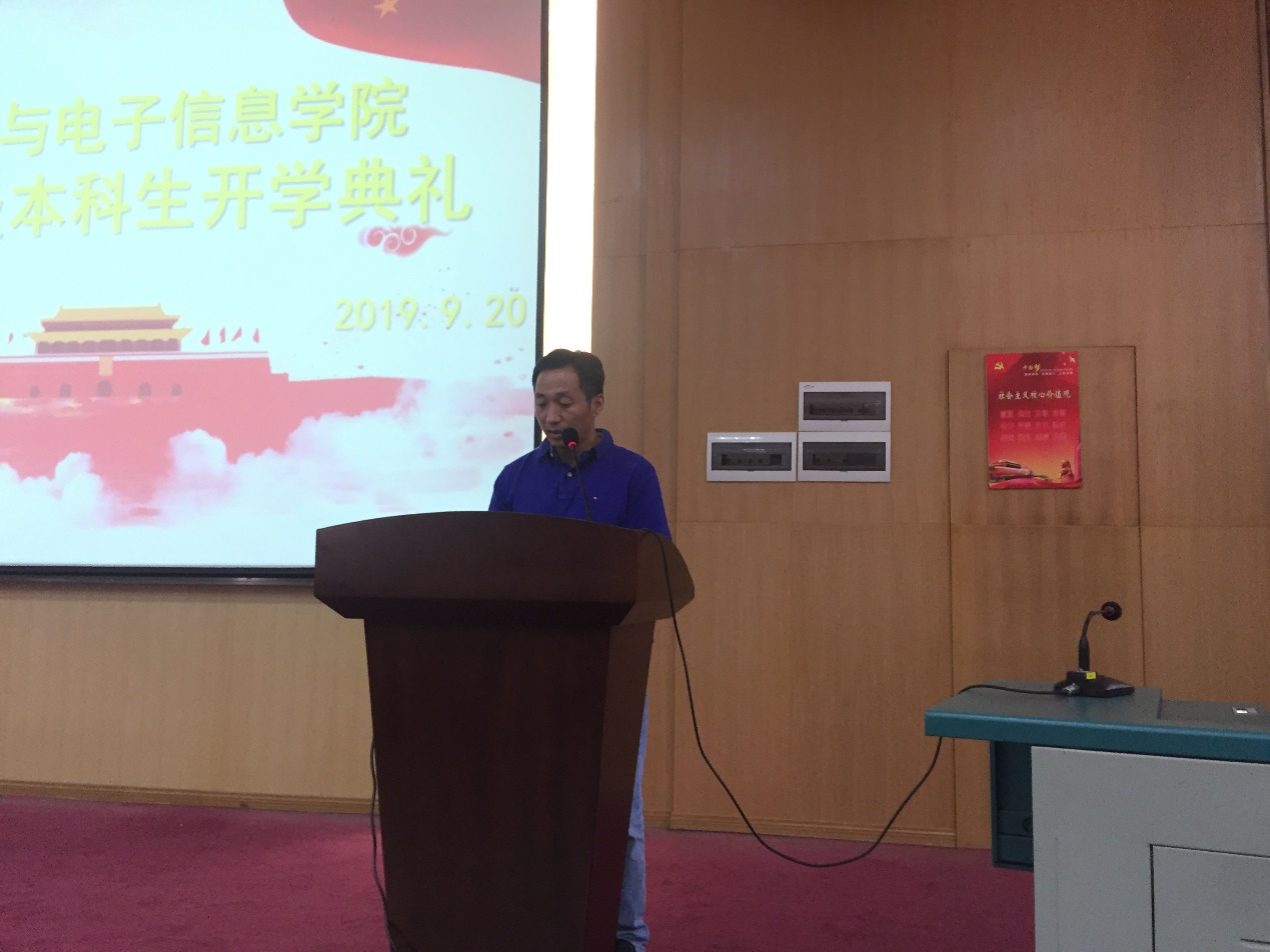 院长丁华锋教授首先发言。他代表吃瓜网站 对2019级新生的到来表示欢迎,期望同学们大学四年能够明确目标,学好理论知识,注重实践动手能力,以积极健康的心态面对大学生活。