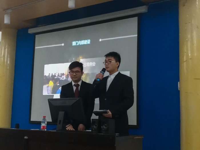 本次答辩采用了5分钟PPT展示+3分钟评委提问+1分钟部门展示的模式。各部门从部门成果,内部建设,工作不足与改进以及对未来的展望四个方面进行了展示,各个部门都展现出了自身的特点与风采。