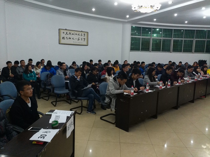 学生会中期考核答辩在大学生活动中心一楼报告厅举行。担任此次答辩的评委有:学生会指导老师杜育,学工组老师李向南,院团委副书记李小鹏、杨君英,院心理协会会长王双贺,国防生协会会长张宜达,学生会主席团成员及各部门部长。