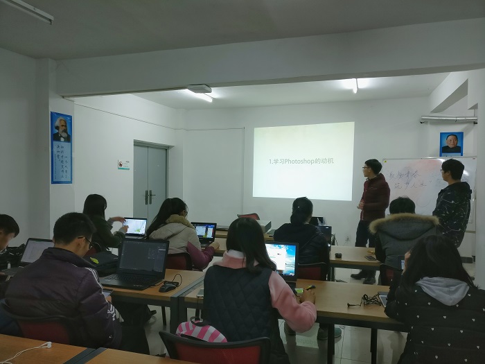 学术部主办的的“谁的青春不迷茫”系列交流会之“PS培训”在63栋7号学习室举行。2015级工设专业的林鑫诺担任主讲人。