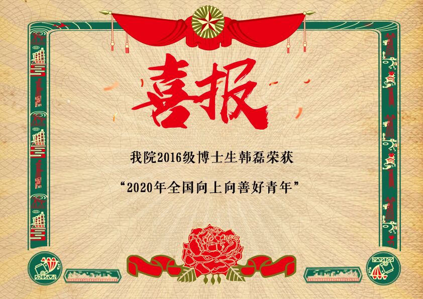 [2020.5]吃瓜网站 2016级博士生韩磊 荣获 “全国向上向善好青年”