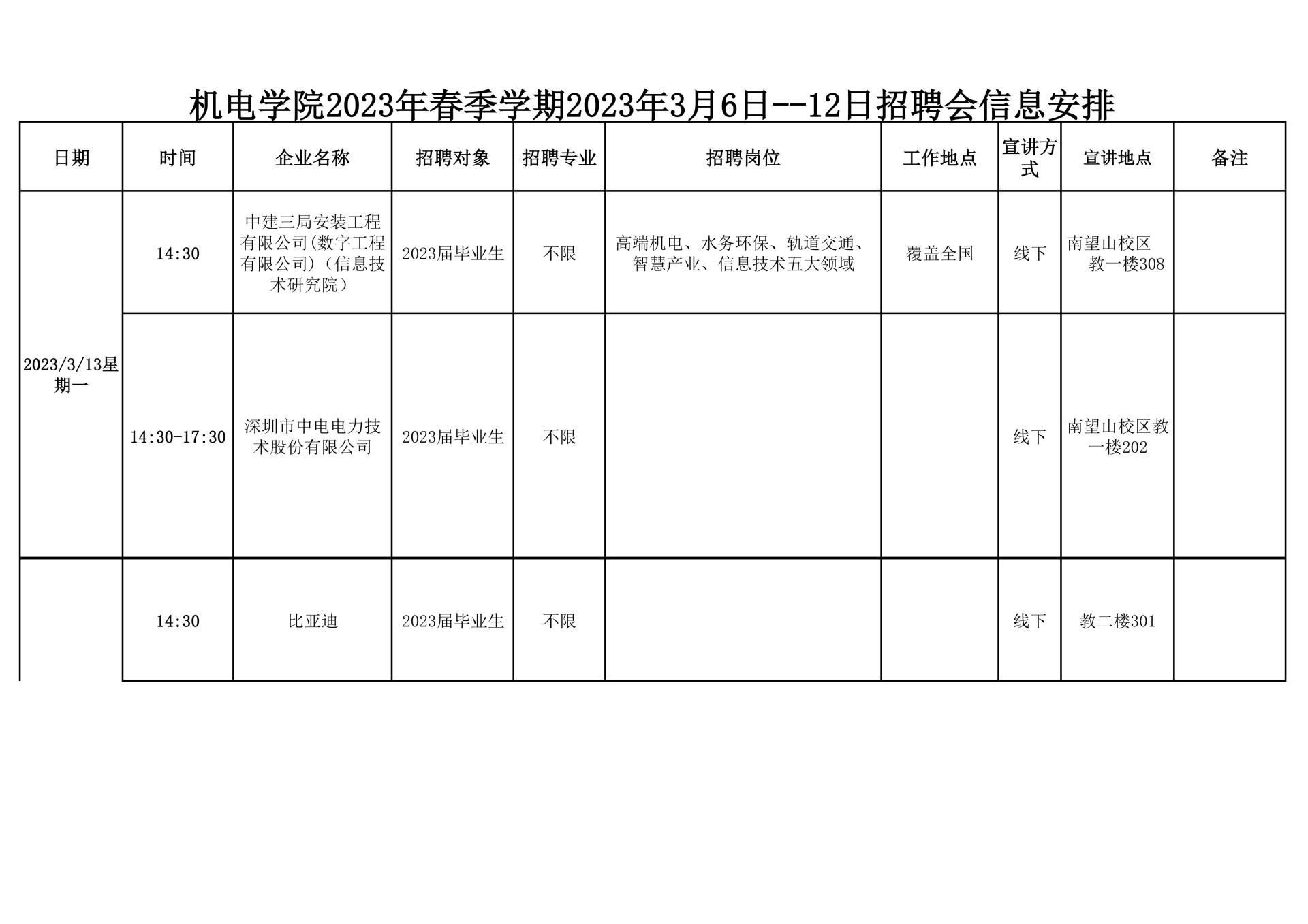 【毕业生·2023年3月13日--18日招聘会信息】吃瓜网站 吃瓜网站 2023年春季学期2023年3月13日--18日招聘会信息安排